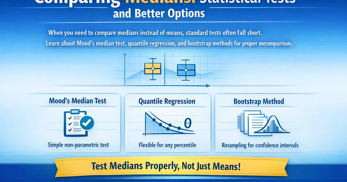 When you need to compare medians instead of means, standard tests often fall short. Learn about Mood's median test, quantile regression, and bootstrap methods for proper median comparison.