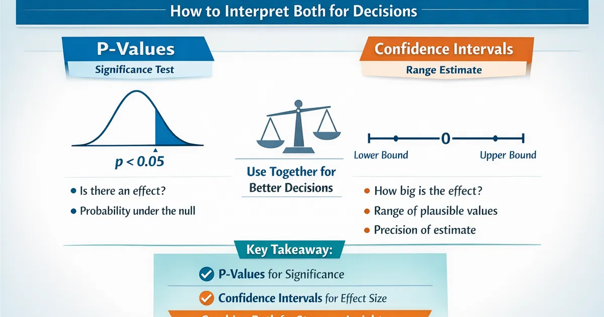 P-Values vs. Confidence Intervals: How to Interpret Both for Decisions