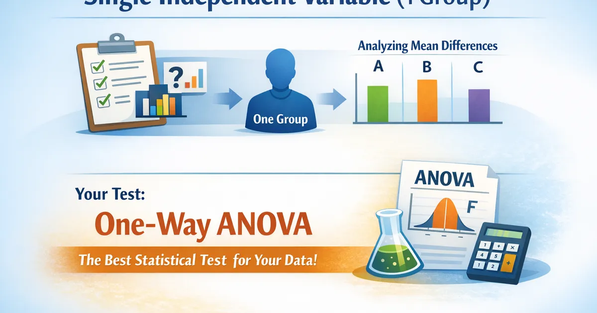 Congrats! Your test is the One-Way ANOVA! Based on your answers to the StatsTest workflow questions, the best statistical test for your question and your data is the One-Way ANO...