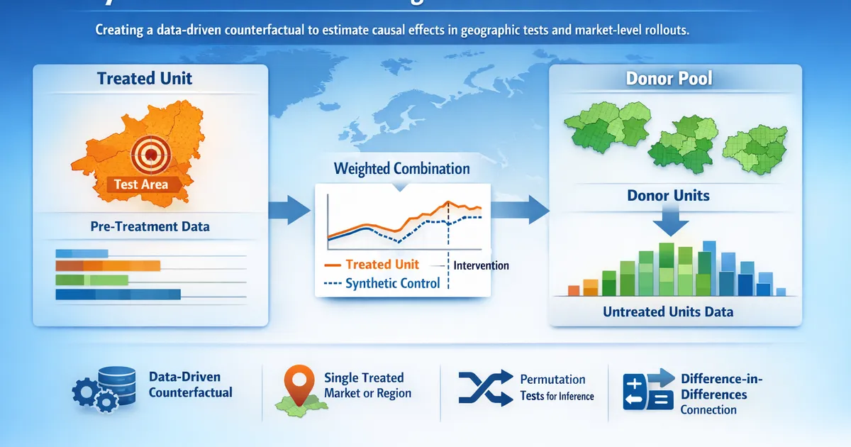 How the synthetic control method builds a data-driven counterfactual from donor units to estimate causal effects in geo tests and market-level rollouts.