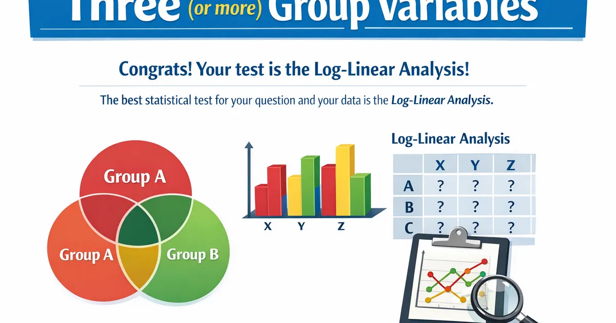 Congrats! Your test is the Log-Linear Analysis! Based on your answers to the StatsTest workflow questions, the best statistical test for your question and your data is the Log-L...
