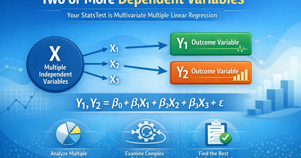 Congrats! Your StatsTest is Multivariate Multiple Linear Regression. Based on your answers to the StatsTest workflow questions, the best statistical test for your question and y...