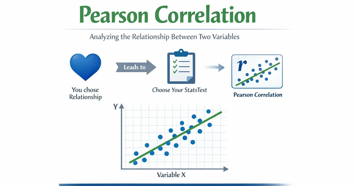 You have chosen Pearson Correlation with your answers to the Choose Your StatsTest questions. To summarize how you got here: Choose Your StatsTest : You chose Relationship. You ...