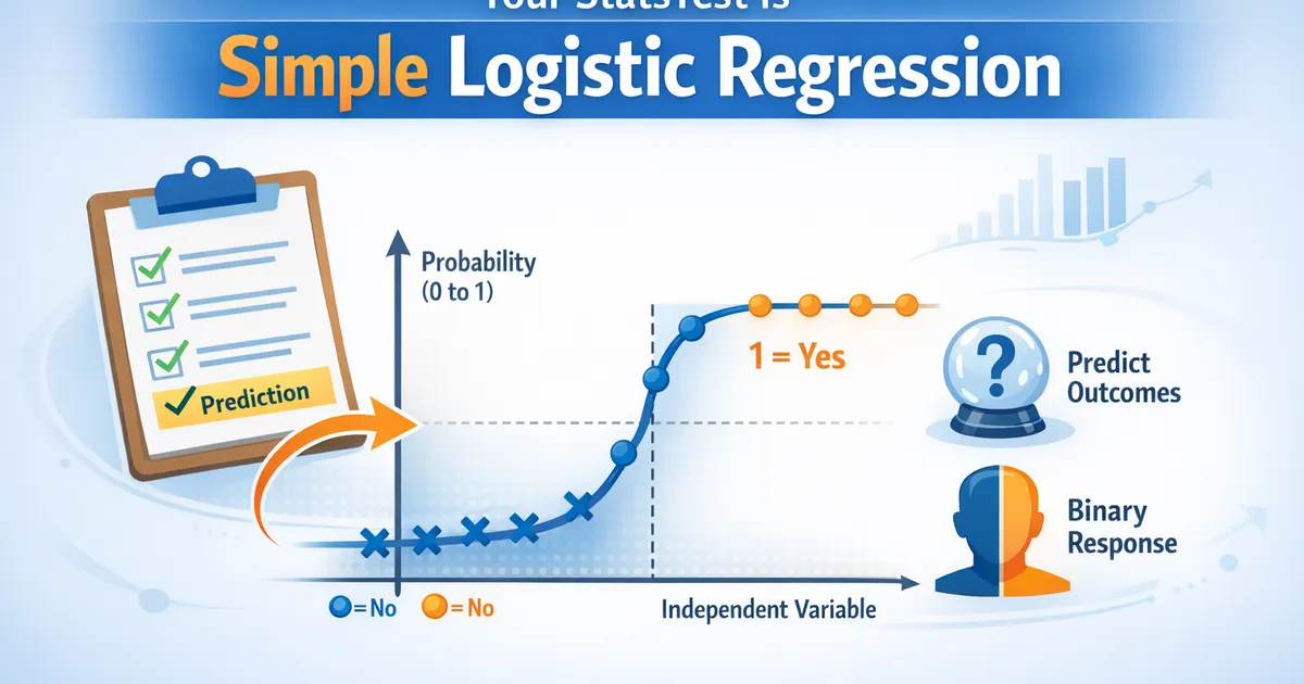 You have chosen Simple Logistic Regression with your answers to the Choose Your StatsTest questions. To summarize how you got here: Choose Your StatsTest : You chose Prediction....